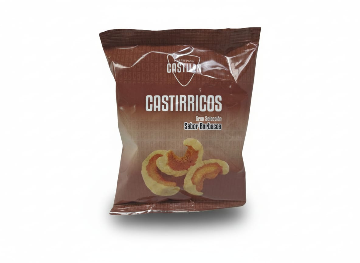Пържени свински кожи с BBQ вкус. Състав: Свински кожи със сланина, свинска мазнина, сол, антиоксиданти (E-306, E-322 и E-304i) и аромат (захар, сол, подправки (червен пипер, лук на прах), глюкозен сироп на прах, регулатори на киселинността (ябълчена киселина), оцветители (екстракт от червен пипер)). Може да съдържа следи от лактоза (мляко) и соя.